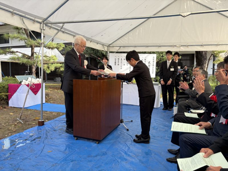 この日はあいにくの雨模様でしたが、ほどよい緊張感の中、厳かで落ち着いた式典となりました。